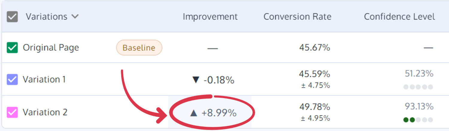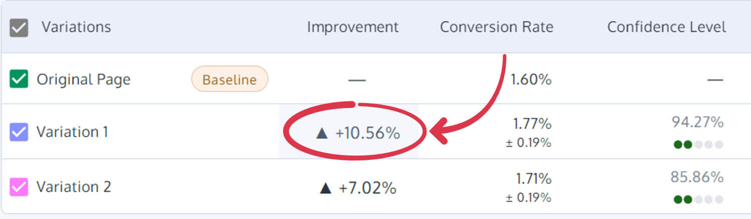 Average of 6.9% improvement to conversion rate & 37.8% Revenue Per User per test